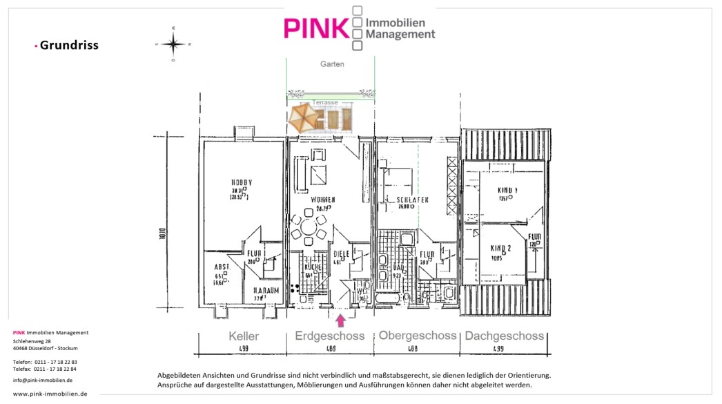 Alle Exposés wurden anhand der uns vom Eigentümer genannten Angaben bzw. übergebenen Unterlagen erstellt, für deren Vollständigkeit und Richtigkeit wir keine Gewähr übernehmen. Diese Exposés sind eine Vorinformation, als Rechtsgrundlage gilt allein der Kaufvertrag. Die Weitergabe der Angebote an Dritte ist ohne unsere ausdrückliche Genehmigung nicht erlaubt. Bei Zuwiderhandlung haften Sie für die uns entgangene Provision. Bei steuerlichen Fragen weisen wir auf die Notwendigkeit einer Überprüfung durch den Steuerberater hin. Grundrisse sind nicht maßstabsgerecht.