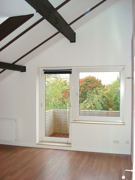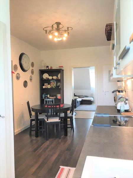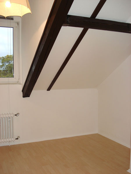 Die gemütliche Dachgeschoss-Wohnung ist modernisiert und bietet neben hochwertigen Laminatböden, neuen Heizkörpern auch hohe Wände, einen großen Wohnraum mit ca. 20m² und einem Nord/West Sonnen-Balkon mit Ausblick ins Grüne. Die optisch schönen Sichtbalken in Schlafzimmer und Wohnraum vermitteln der Wohnung einen einzigartigen, gemütlichen Touch.