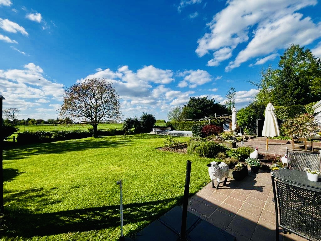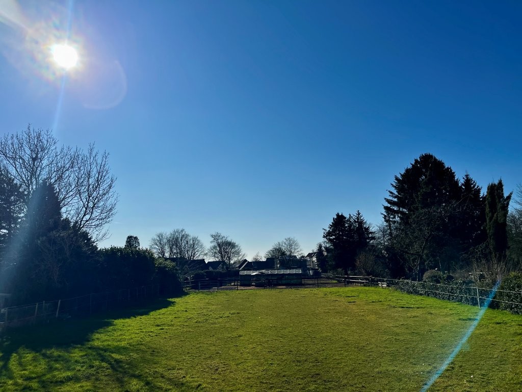 Der weitläufige Garten hinter und neben dem Haus und der unverbaubare Ausblick auf das angrenzende Feld stellen einen zusätzlichen Wert und hohe Wohnqualität dar. Der hilfsbereite Mähroboter, einen großen und effizienten Swimmingpool und das Gartenhaus, schenkt der Familie vielfältige Möglichkeiten für Spiel, Entspannung und fröhliche Stunden im Freien.