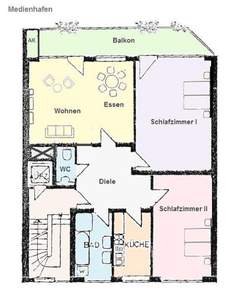 *Im Herzen des Medienhafens* Möblierte großzügige 3-Zimmer-Wohnung mit großem Balkon