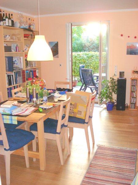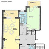 Die Wohnung hat eine Wohnfläche von rund 100m² (ohne Garten) und teilt sich auf in Wohnraum, zwei Schlafzimmer, Küche sowie Bad und Gäste-WC mit Dusche und Diele.