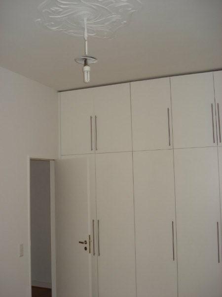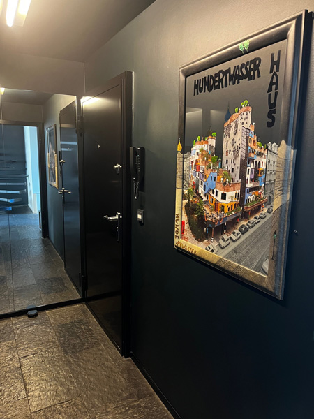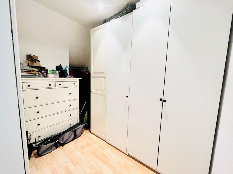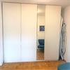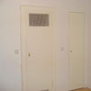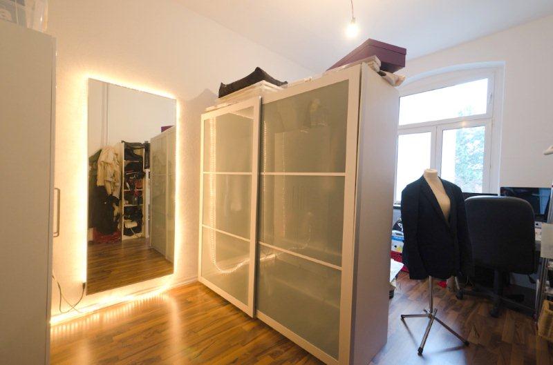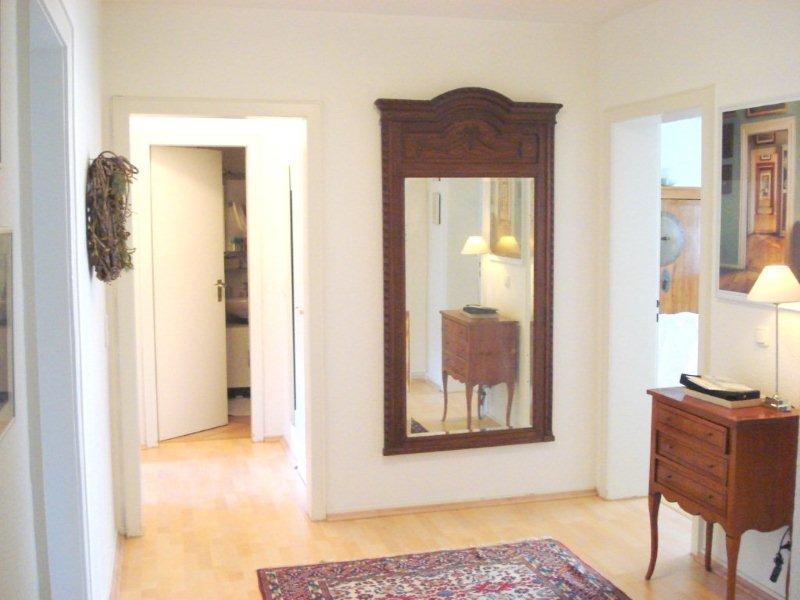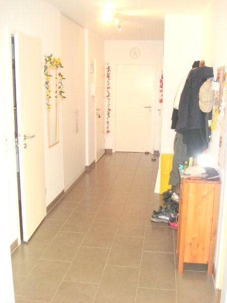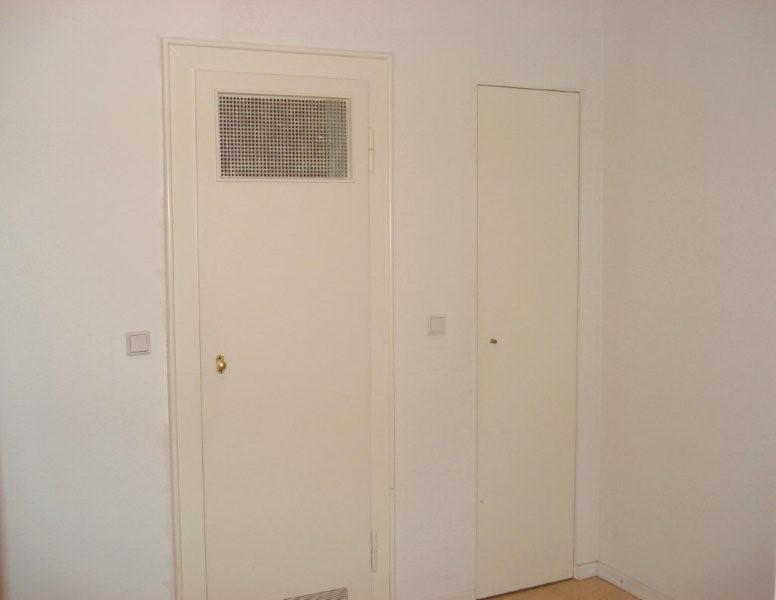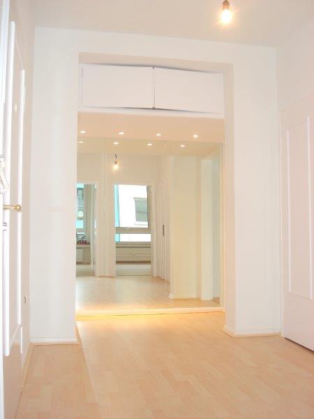 In der zweiten Diele im hinteren Teil der Wohnung, der zwischen Küche und Schlafraum liegt und zu dem das Badezimmer führt, ist über die gesamte Länge ein Schrank eingebaut.
