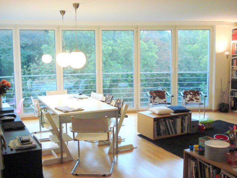 Den Mittelpunkt dieser ca. 115 m² großen Wohnung bildet das geräumige Wohn- und Esszimmer mit direktem Balkonzugang.
