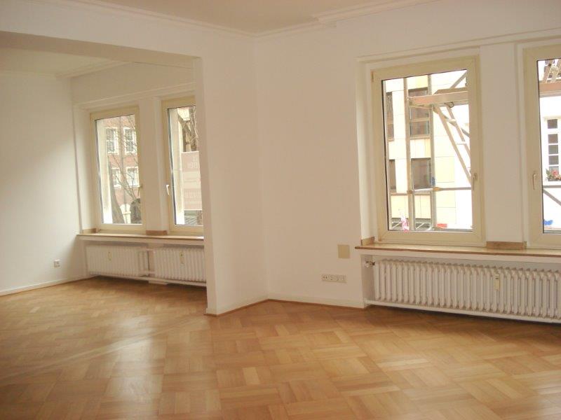 In dieser rund 104 m² großen 3-Zimmer-Wohnung verwirklichen Sie Ihre Idee vom attraktiven Wohnen in einer bevorzugten Lage der Düsseldorfer Innenstadt. Die Wohnung liegt in einer ruhigen Seitenstraße und bietet alle Vorzüge der direkten Innenstadtlage. Als Mieter dieser attraktiven Wohnung genießen Sie das Flair des Stadtlebens & kommen dennoch in den eigenen vier Wänden zur Ruhe. Die Wohnung bietet Ihnen auf ca. 104 m² ein großzügiges Wohnambiente mit 3-Zimmern, eine Küche, eine einladende Diele, Abstellraum, zwei hochwertige Badezimmer, sowie einen großen Süd/West-Balkon. Die Highlights dieser Wohnung sind das ca. 30m² große Wohn- und Esszimmer mit dem großzügigen nach Süd-/West ausgerichteten Balkon, der über die ganze Länge vor dem Wohnraum und der Küche liegt außerdem, die zwei hochwertigen Badezimmer jeweils mit WC und neben dem ca. 25m² großen echten Wohlfühl-Schlafzimmer, auch das weitere, dritte Zimmer mit ca. 20m².