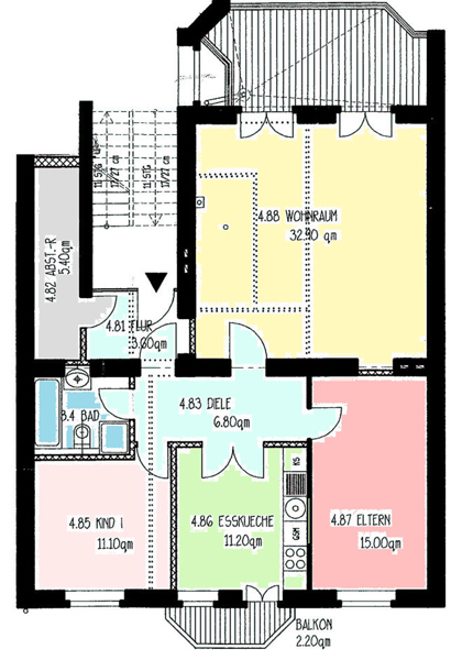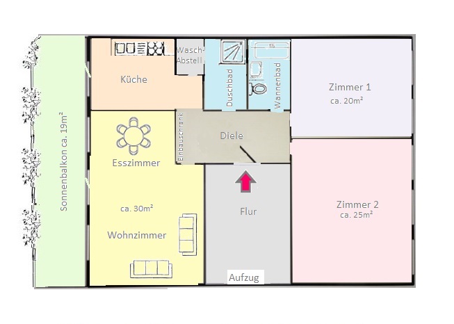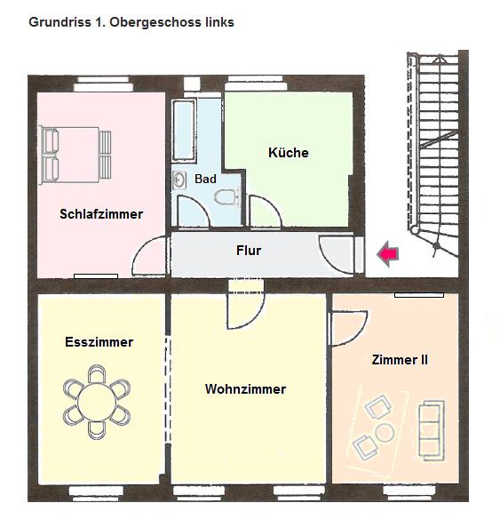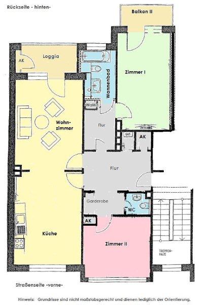 Zimmer | 2 Schlafzimmer + Wohnzimmer+ Esszimmer + Küche+ Wannenbad + Diele |