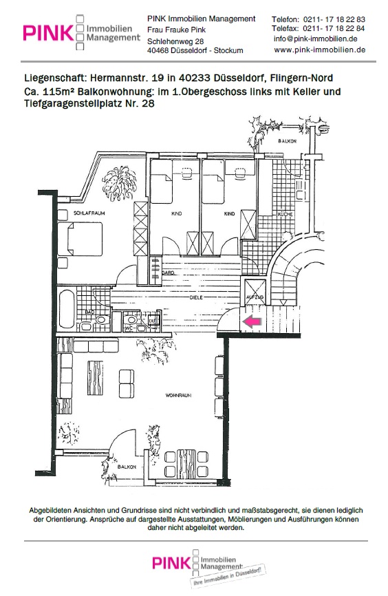 Alle Angaben in unseren Exposés wurden nach bestem Wissen und Gewissen anhand der uns vom Eigentümer bzw. Auskunftsbefugten genannten Angaben bzw. übergebenen Unterlagen erstellt und spiegelt nur unsere Meinung wieder. Wir sind stets um Vollständigkeit, Richtigkeit sowie Aktualität der Inhalte bemüht, übernehmen dennoch keine Gewähr dafür. Auch für späteren Schadenersatzansprüchen sowie Streitigkeiten, die aus dem Mietverhältnis entstehen, sowie daraus resultierenden Ansprüchen, können wir keinerlei Haftung übernehmen. Zwischenvermietung wie Änderungen vorbehalten. Die Exposés dienen als Information. Als Rechtsgrundlage gilt allein der abgeschlossene Mietvertrag. Die Texte sind urheberrechtlich geschützt. Eine Verwendung für den eigenen Bedarf, Verkauf oder Weitergabe an Dritte sind nicht erlaubt. Die Weitergabe dieses Angebotes an Dritte ist ohne unsere ausdrückliche Genehmigung nicht erlaubt. Bei Zuwiderhandlung haften Sie für die uns entgangene Provisions-- bzw. Schadensansprüche. Abgebildeten Ansichten und Grundrisse sind nicht verbindlich und maßstabsgerecht, sie dienen lediglich der Orientierung. Ansprüche auf bestimmte Ausstattungen, Möblierungen und Ausführungen können daher nicht abgeleitet werden.