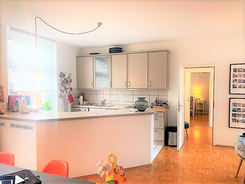Extras | Balkon zum Hinterhof, Parkettboden, Einbauküche, modernes Bad, Kellerraum, Fahrradraum, gemeinschaftlicher Wasch- und Trockenraum |
