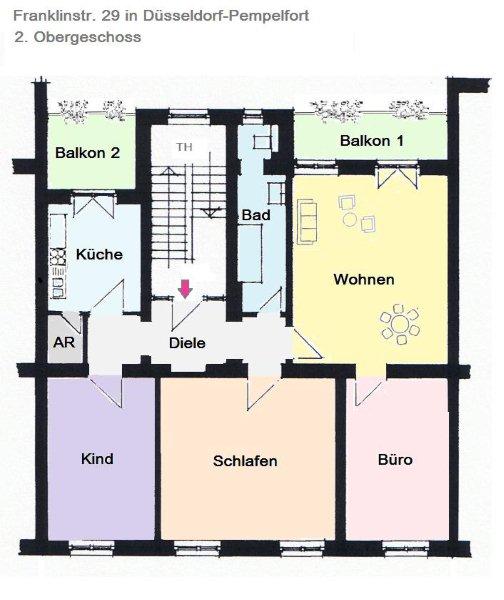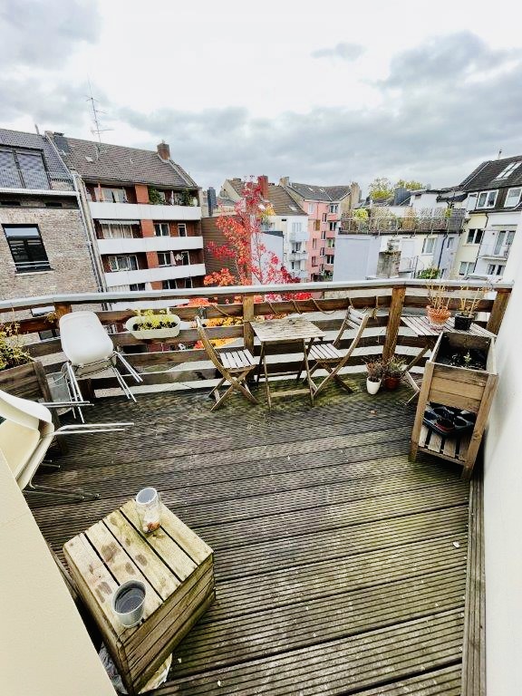 Erstklassige Maisonettewohnung in TOP Wohnlage von Flingern am Cranachplatz mit zwei Sonnenbalkonen, Kamin, Einbauküche und vielen Einbauschränken usw.