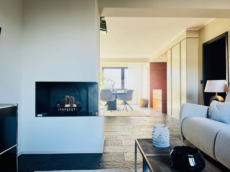 HIGHLIGHT ist der ca. 47 m² große Wohn-/Essbereich mit Kamin und Balkon zu beiden Seiten: viel Platz für Sie & Ihre Gäste.