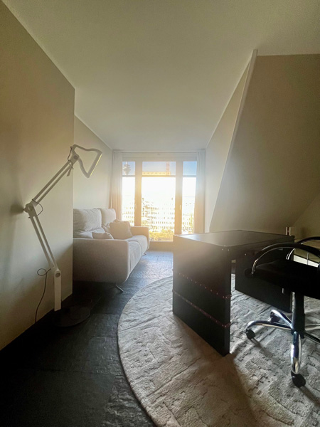 Auf der oberen, privaten Ebene erwartet Sie ihr Master-Schlafzimmer mit integrierter Ankleide und Bad En Suite mit bodentiefer Dusche und Badewanne wie Washlet: die High-End-Toilette. Sowie ein weiteres Zimmer, ideal als Office, mit bodentiefem Fenster mit Blick auf das Wahrzeichen der Stadt: den Rheinturm.