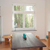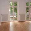 Begeistern wird Sie das freundliche Wohnzimmer mit großen Fensterelementen, Eichenparkett im Schiffsboden-Stil und weiß lackierten Türen, die der Wohnung eine klassische Eleganz verleihen.