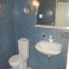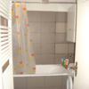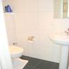 Das hell geflieste Tageslichtduschbad verfügt über WC, Urinal, Waschtisch mit Spiegel- und Unterbauschrank sowie einen Waschmaschinenanschluss.