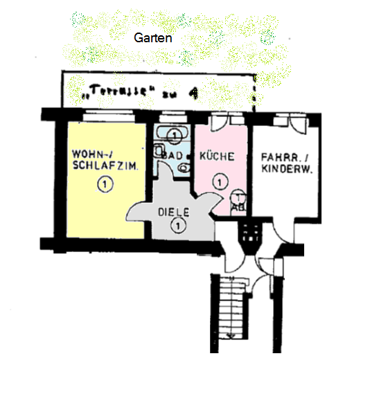 Extras | Gasetagenheizung, 2 Terrassen, EBK, Wannenbad etc. |