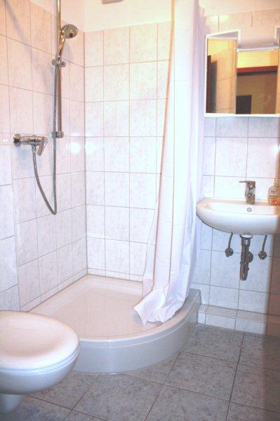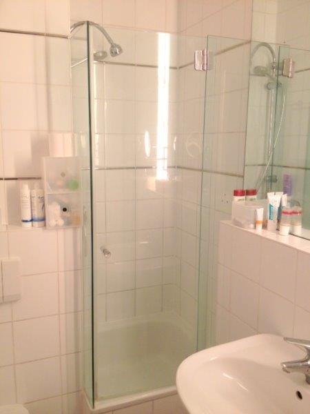 Ein hochwertiges Duschbad sowie der Nussbaumlaminatboden gehören ebenso zu der besonderen Ausstattung dazu.