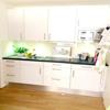 Die optimal eingepasste Einbauküche strahlt mit Hochwertigkeit u.a. durch die schwarze Granitarbeitsplatte und bietet Ihnen viel Komfort.