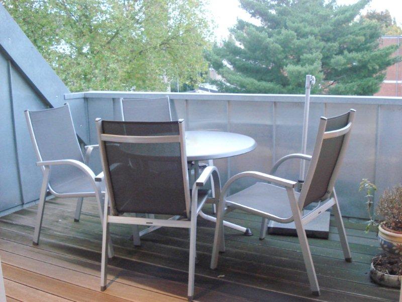 Das + HIGLIGHT + ist die ruhig zum Hinterhof gelegene außergewöhnliche Sonnenterrasse, die Ihnen zur alleinigen Nutzung zur Verfügung steht.